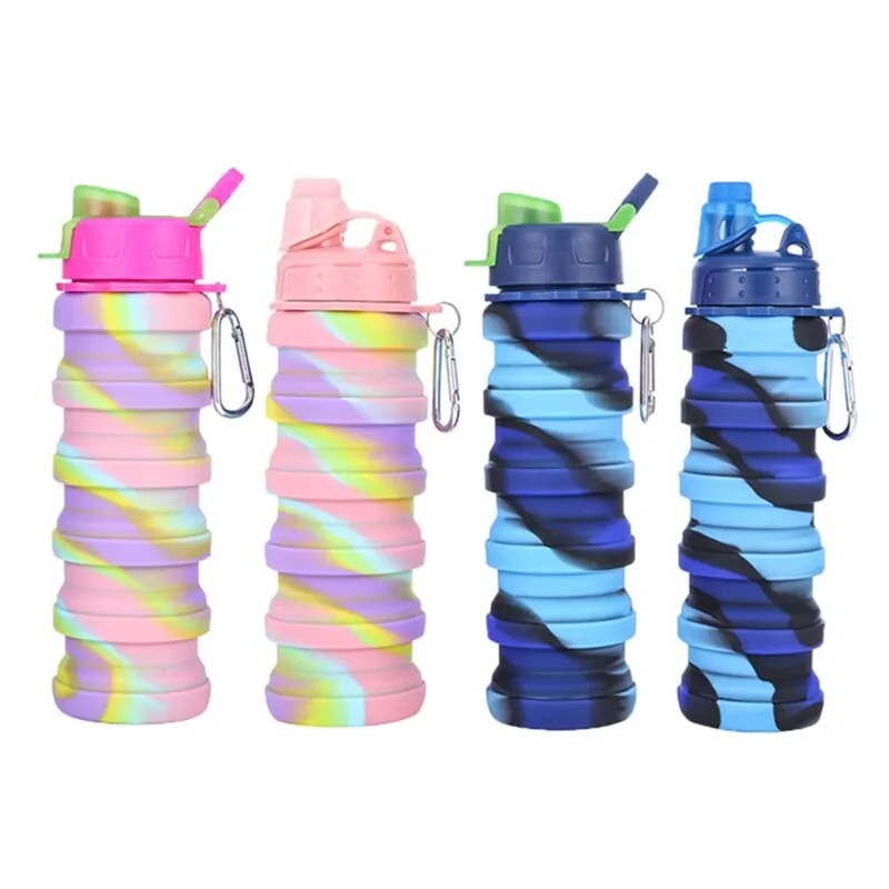BZY Foldable Drinking Water Bottle Leakproof Fold Silicone Water Bottles Cup With Straw Outdoor Hiking Camping 500ml { Multi Color } - 3074