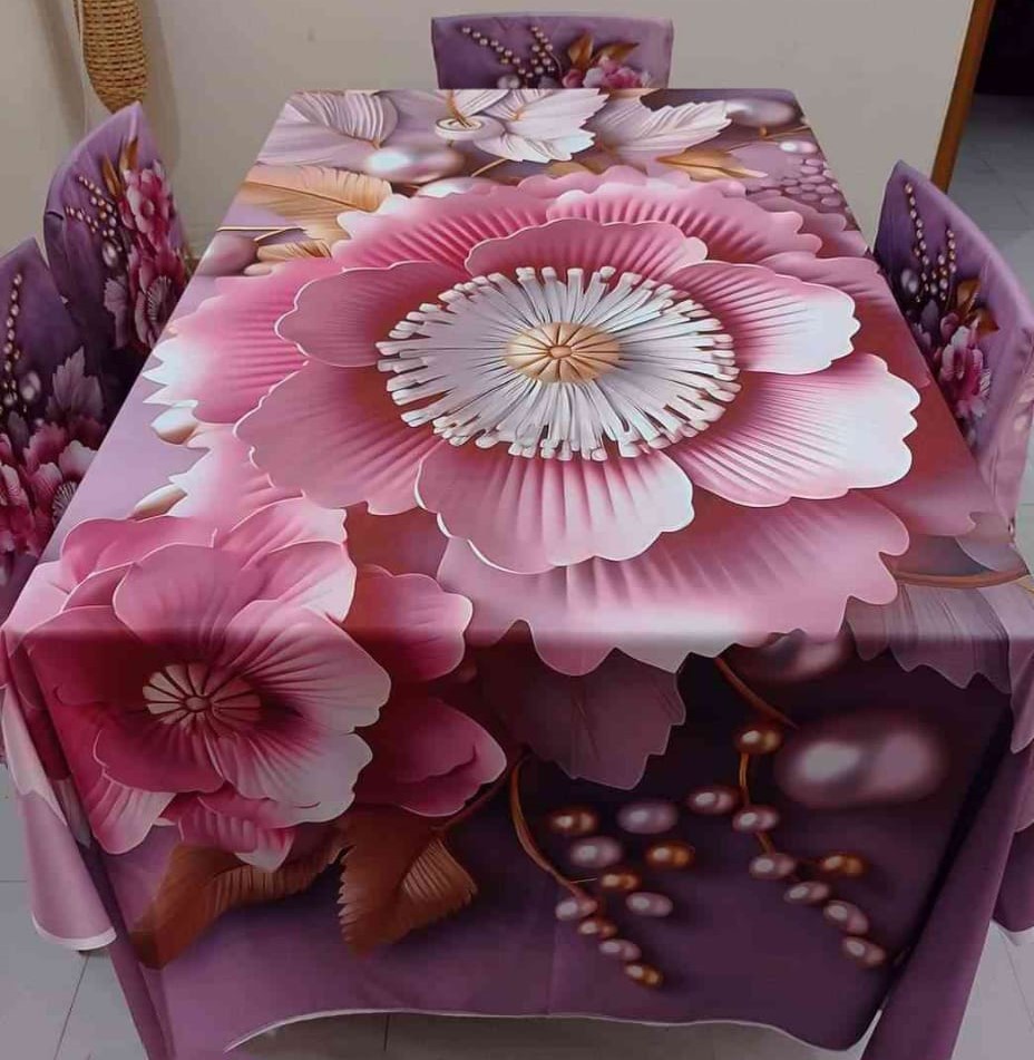 চমৎকার 3D প্রিন্টেড টেবিল ক্লথ সেট:""চায়না চিলি কটন কাপড়ের অসাধারণ মান ও আধুনিকতার অভিজ্ঞতা""