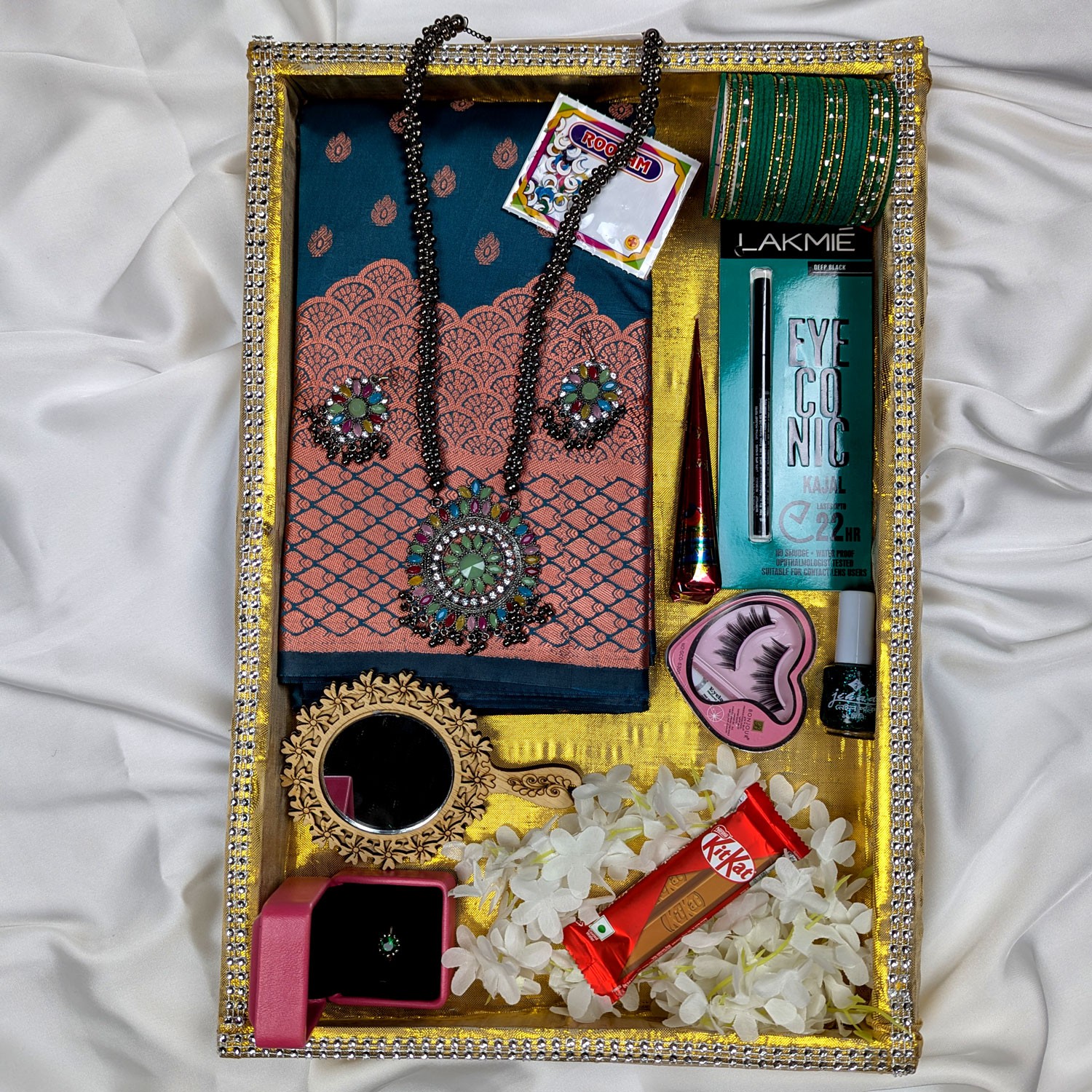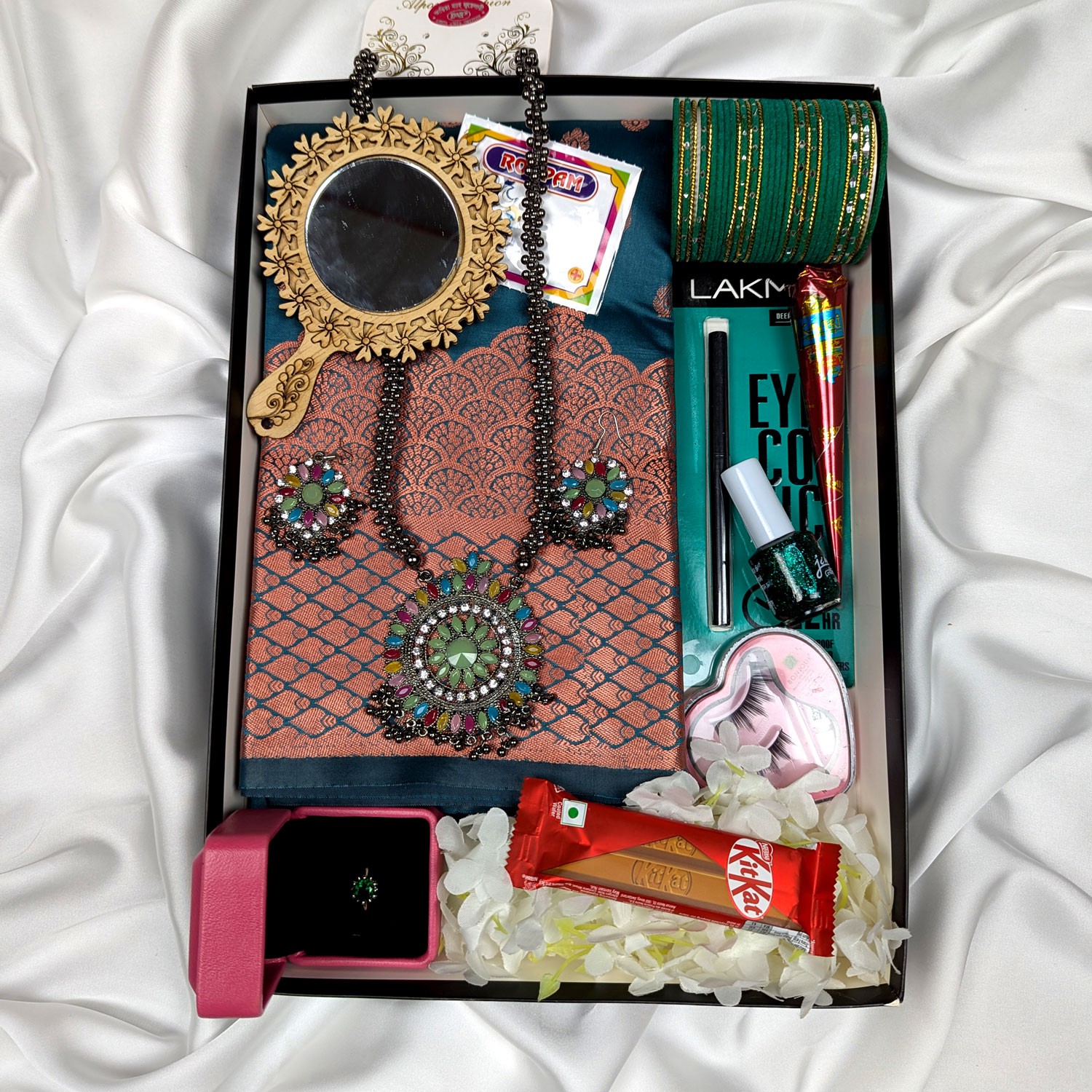 💍 ফিঙ্গার রিং উইথ বক্স , উডেন আয়না, কাজল ও মেহেদি